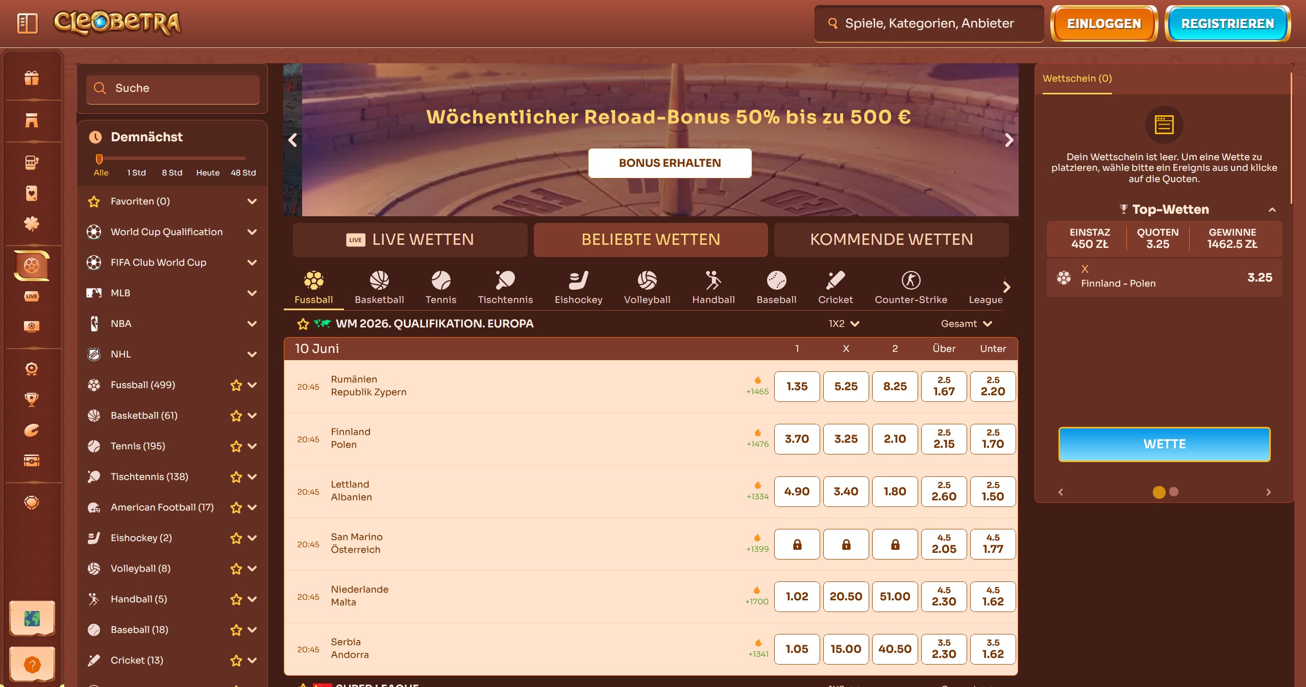 Das Cleobetra Casino ist eines der neuesten Online-Casinos im Ägyptenstyle, mit zahlreichen Spielen passend zum Motto.Willbet Erfahrungen Deutschland – Spielermeinungen & Testbericht
