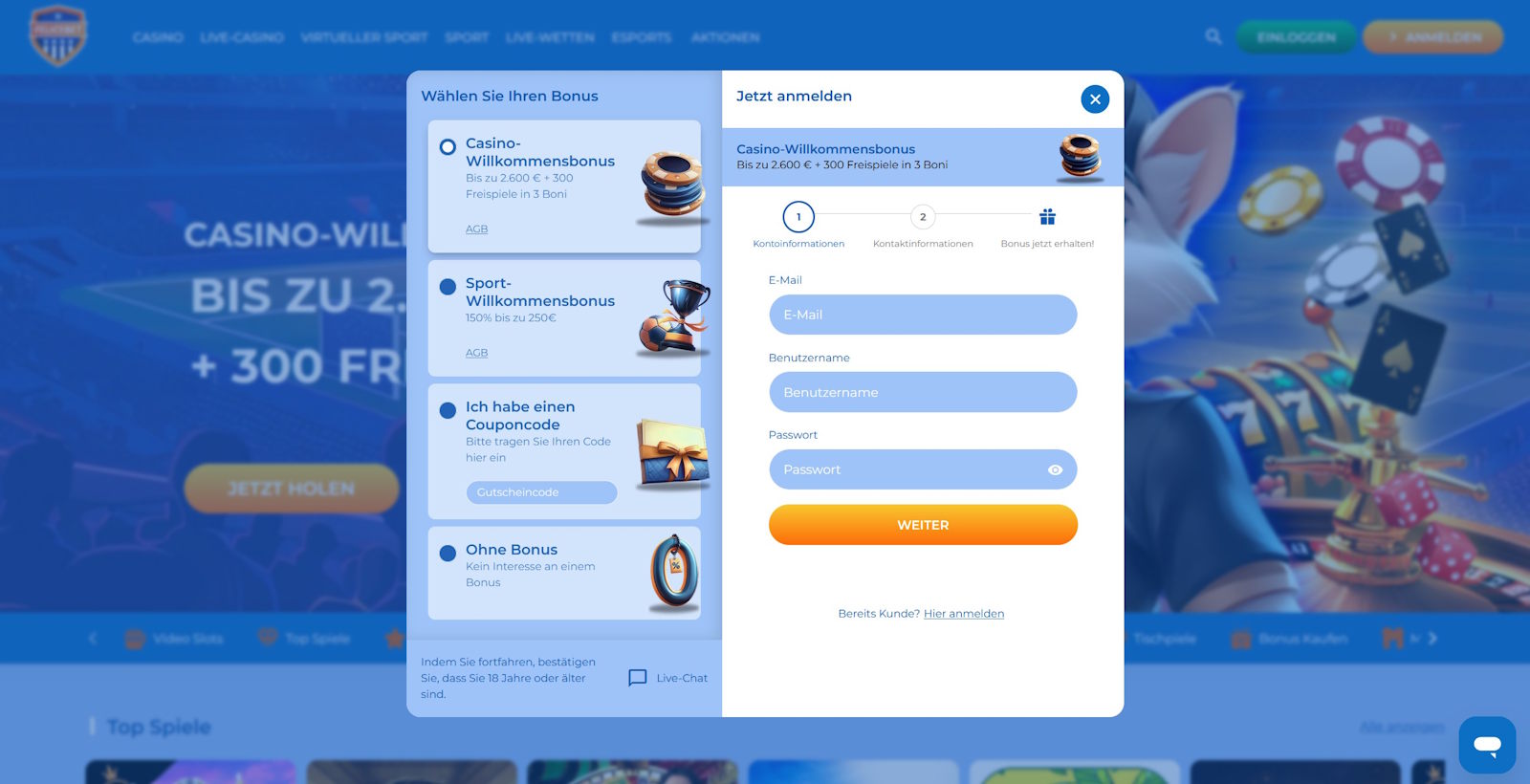 Bonus3-in-1 Bonus bis 2600 € + 300 FS