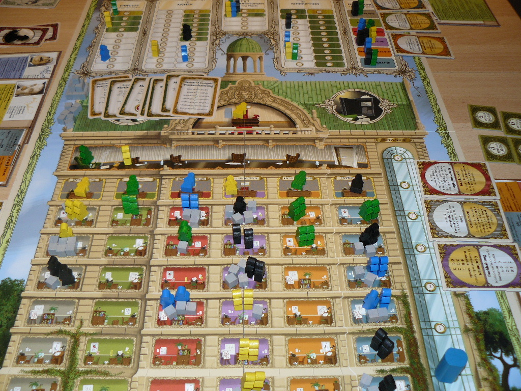 Wenn man das Spielfeld bei Machtspiele aufbaut mit dem ganzen Zubehör, dann fühlt man sich erst einmal fast erschlagen. Doch nach und nach bekommt man schnell einen Durchblick und weiß wie es läuft. Es gibt eine riesen Auswahl an Aktionen die einen entweder voran bringen oder den Mitspielern auch schaden können. Zu beginn ist das lesen der Anleitung erst einmal ein wenig zeitaufwendig, aber danach doch recht verständlich und gut spielbar.