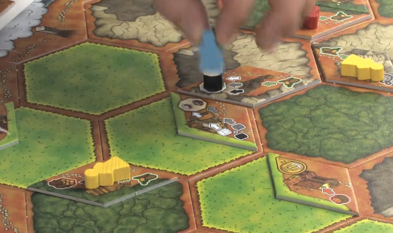 Man kann bis zu drei Gebäude auf jedem Sechseck des Spielfeldes von Neuland bauen. Wichtig ist es dabei, den Hintergrund der Gebäudeplättchen Aufmerksamkeit zu schenken. Denn auf einer Wiese kann man keine Mine bauen sondern nur in den Bergen. Im Wald wird ein Schafzüchter keinen Erfolg haben sondern braucht dafür seine Wiese. Für jede Gebäudeart muss man auch Baukosten zahlen und diese muss man erstmal erwirtschaften.