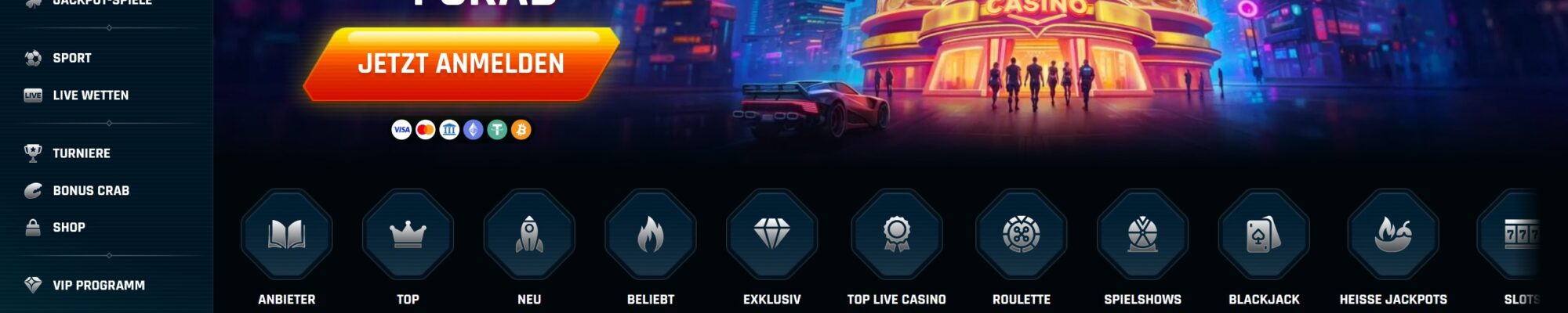 + 250 FS + 1 Bonus Crab ★ Live Dealer ★ Sportwetten, Slotautomaten