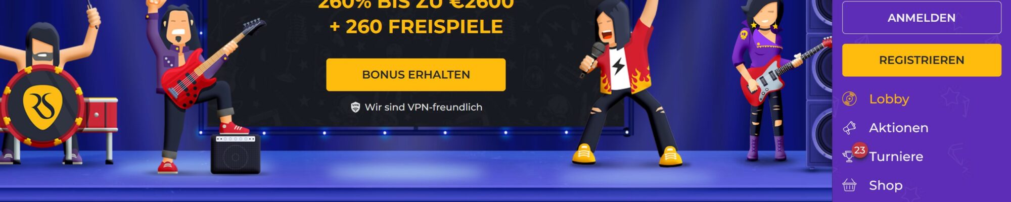 Ein rundum gelungenes Projekt mit witzigem Setting. Man muss kein Rockfan sein, um sich hier wohlzufühlen, es ist eben reine Geschmackssache, ob einem das Webseiten-Layout gefällt. Jedenfalls fanden wir die Navigation ganz gelungen, wenn es auch hier und da Verbesserungsmöglichkeiten gibt. Wo auf alle Fälle noch etwas nachgearbeitet werden muss ist beim Support, denn dieser ist aktuell, zumindest zum Zeitpunkt unseres Casinotests, nur in englischer und russischer Sprache verfügbar.