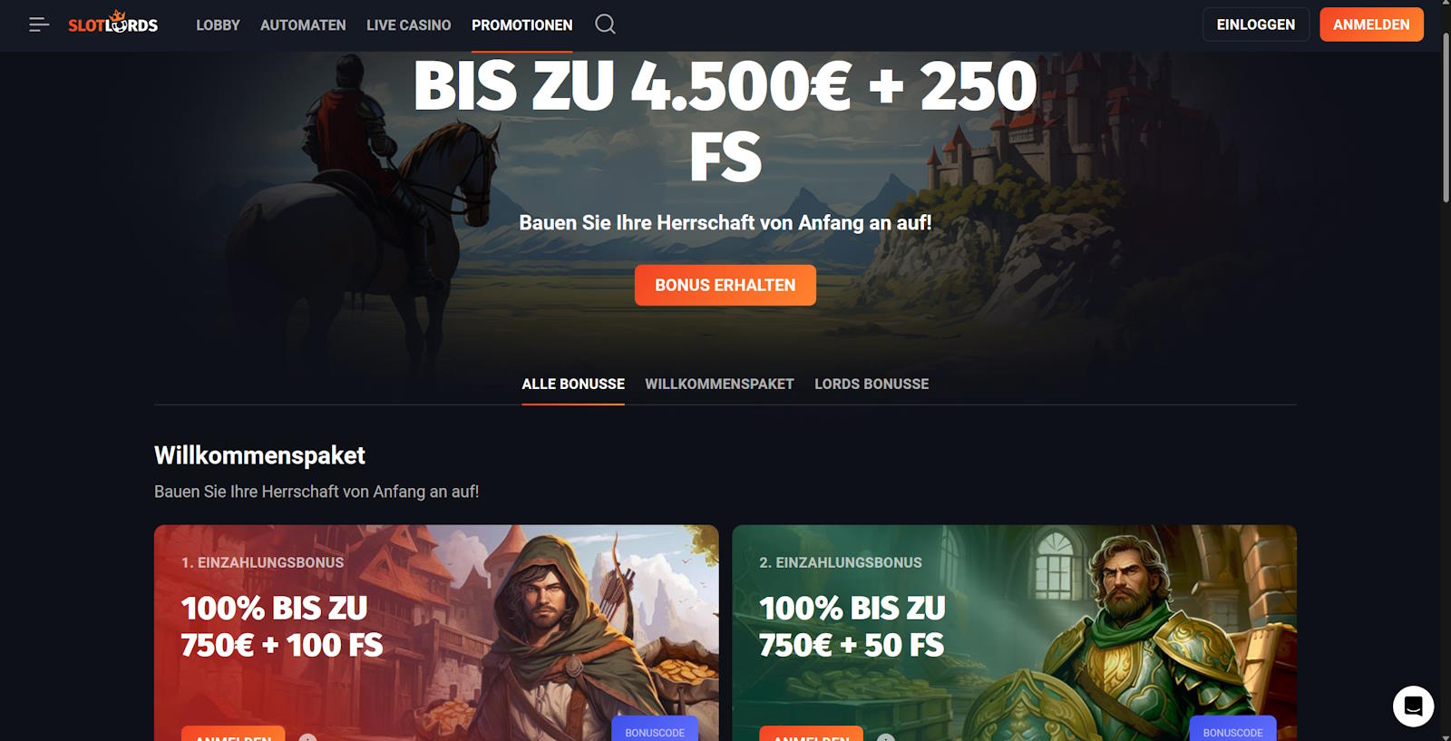 Slotlords bietet allen Neukunden einen lukrativen 4-in-1 Bonus bis zu 5000 € mit Freispielen an. Jetzt den Testbericht lesen!