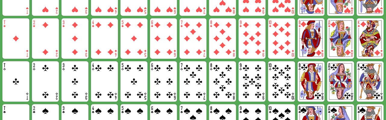 Die Form Dreizehnmal vier von Solitär benötigt ein Set mit 52 Karten. Hierbei ist die Wertigkeit der Spielkarten zu beachten. Dabei zählt ein Ass für eins und danach einfach der Reihenfolge nach bis zu einem König. Hier beträgt der Wert 13. Ausgelegt werden die Spielkarten in der Reihe zu 13 insgesamt Karten. Wenn dabei eine Karte auf dem zugestimmten Wert landet, dann nimmt öder Spieler sie wieder heraus. Dieser muss einen Freiraum lassen und wird bei dieser Solitär Version eine folgende Reihe über die andere aufgelegt.
