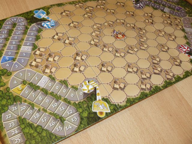 Um taktischer spielen zu können, zieht jeder Spieler vier statt drei Wandersteine aus dem Beutel. Aber in dem Spielzug legt man trotzdem nur drei Steine auf den Spielplan. Jeder entscheidet sich dann selbst ob er am Zugende noch den vierten Stein legt oder ob man ihn zurück in den Beutel wirft und später vier neue Wandersteine ziehst.