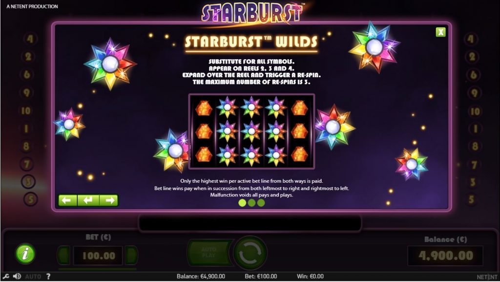 Der NetEnt Slot Starburst ist ein 3D-Video-Slotautomat. Er fällt durch seine tolle Grafik, Animationen und den Sound auf. Auf der Beliebtheitsskala steht der Automatenslot bei Glücksspielern ganz weit oben.