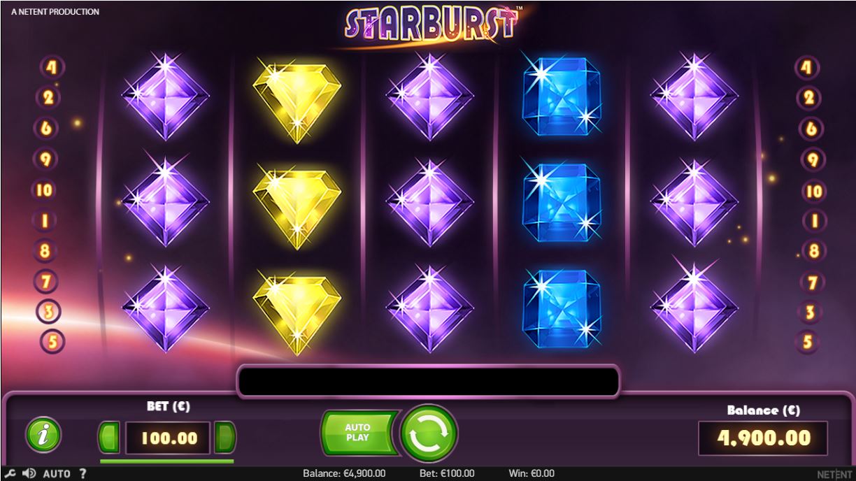 So sind die Regeln und Features von Starburst schnell gelernt, was das Spiel auch für Anfänger durchaus interessant macht. Der Slot läuft auf klassischen 5 Walzen mit 10 Gewinnlinien und auch wenn ihm das Scatter Symbol fehlt, so räumt er dem Spieler im Verlauf des Spiels kostenlose Spins ein, welche die Gewinnchance natürlich erhöhen. Auch der regenbogenfarbene Stern als Wild-Symbol in der klassischen Funktion des Jokers schafft zusätzliche Möglichkeiten auf höhere Gewinne.