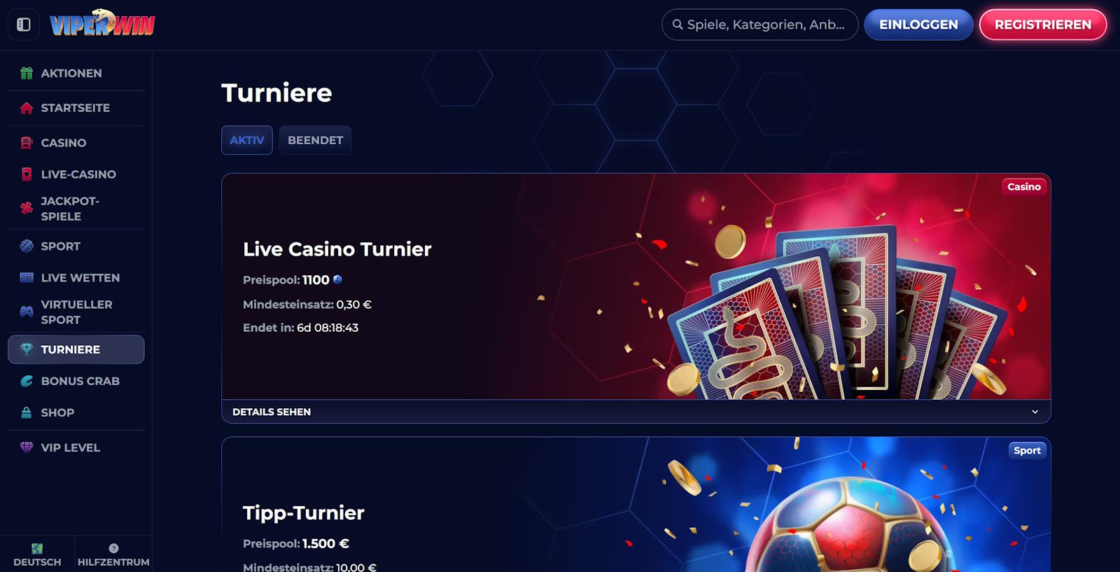 ViperWin ist das aktuellste Online Casino des Providers Rabidi N.V. mit Curacao-Lizenz. Keine Limits, keine Pausen!