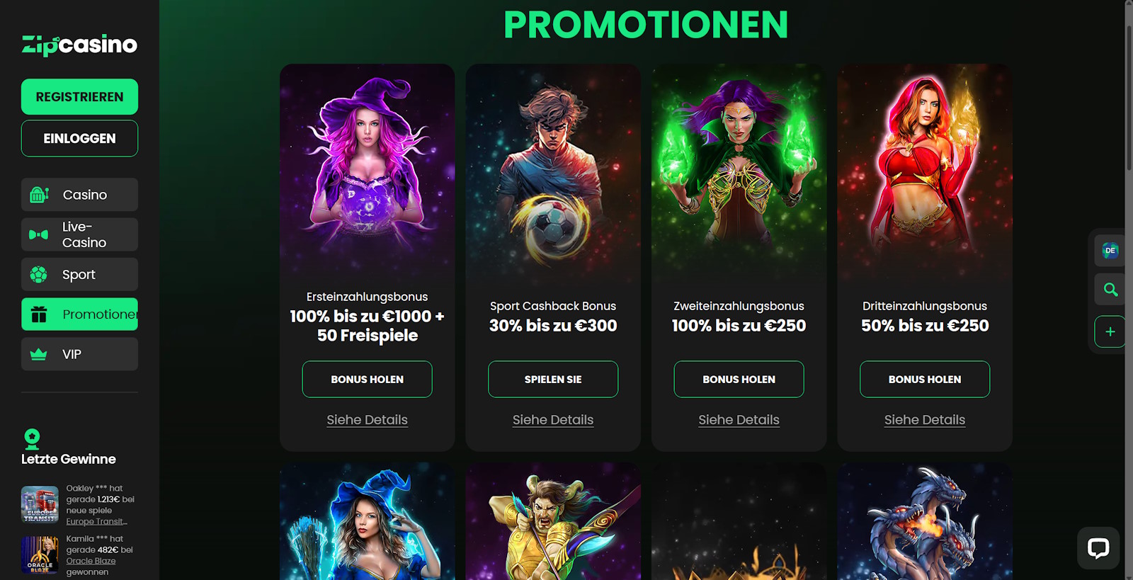 Kundendienstper Live Chat & Mail an support@zipcasino5431412.com